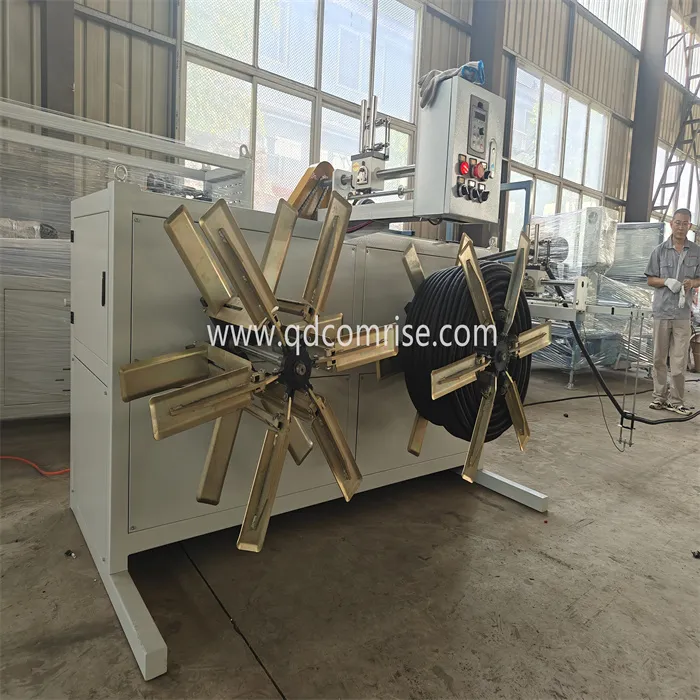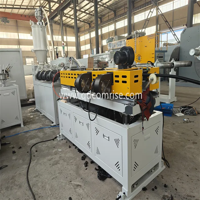 Цев улази у труме, где се обликује у валовитим профилу помоћу блокова калупа и вакуумског притиска.