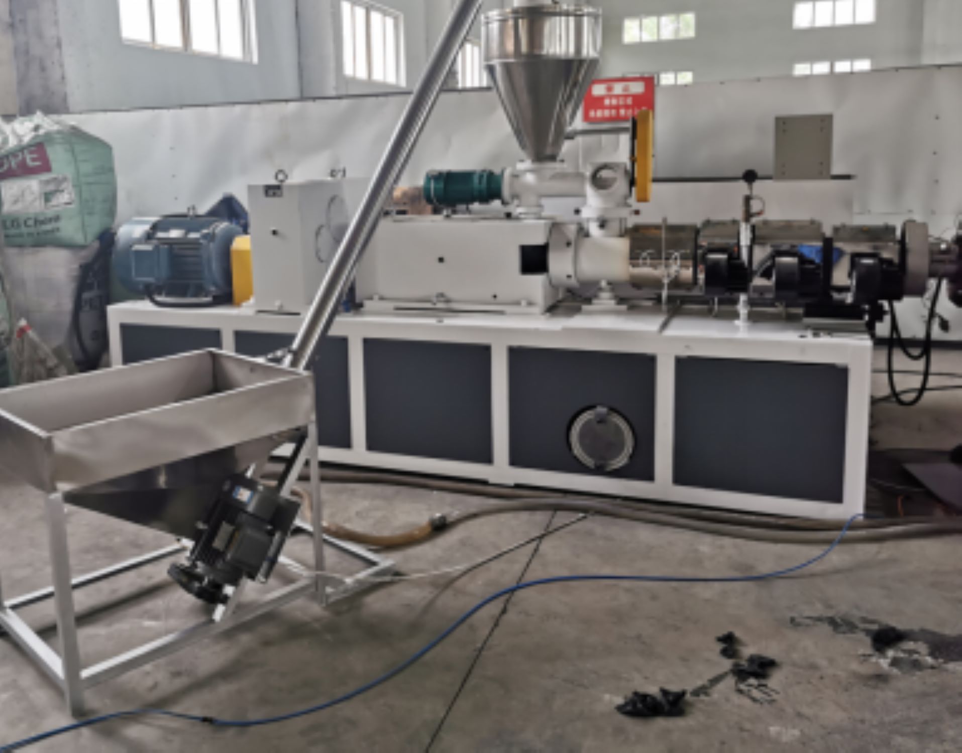 2 Линија за производњу ПВЦ цеви састоји се од коночног екструдера, вакуумског калибрације, штампач, приколица, дизалицама виљушкари итд.