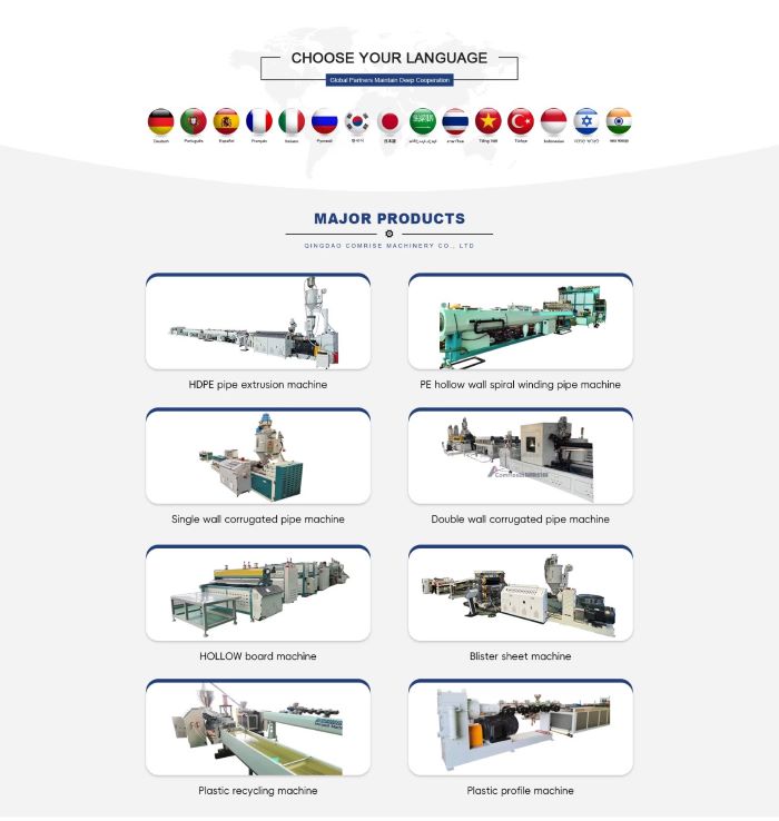 Такође имамо много производа као што је производна линија ПЕ цеви, ПВЦ производна линија за производњу профила, линију за производњу профила, гранулацијске линије производње линије линије итд. Можете бирати између различитих производа.