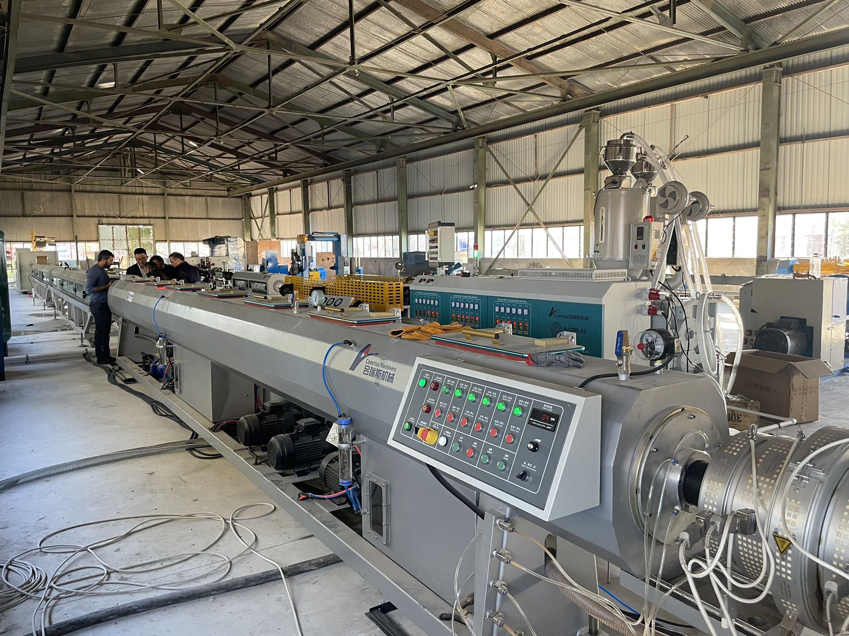 Кингдао Цомрисе Мацхине Маин Продуцтион Лине, укључујући високу ефикасност производње цеви за водовод, ПЕ велики пречник за производњу цеви за зидну цев, ППР хладна и топла водоснабдевање цеви производња цеви, континуирану пластичну цевску цевску цевску производњу, и ПЕ велики карат цеви за производ......